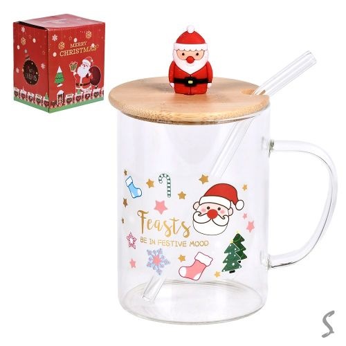 Чашка новорічна з бамбуковою кришкою та трубочкою Feasts 450мл R100354