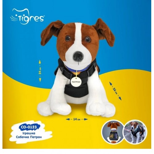 Іграшка Пес Патрон – дизайнерська іграшка-прототип знаменитого українського собаки – розмінувальника джек-рассел-тер`єра Патрона. Патрон – став символом незламності українського народу й справжнім захисником. Про цього собачку мріє кожна дитина. Саме тому наші дизайнери створили іграшку схожу до чотирилапого героя. Пес Патрон одягнений в службовий одяг як у справжнього розмінувальника а також має іменний медальйон на жовто-блакитній стрічці. Чотирилапий захисник стане справжнім другом для дитини з яким малюк почуватиметься в безпеці!