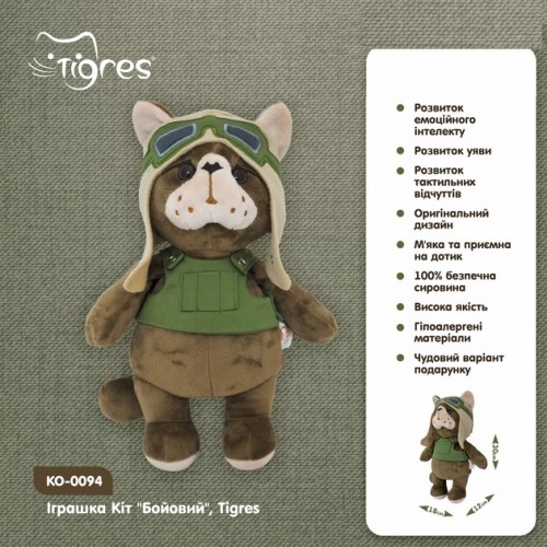 М'яка іграшка патріотична Кіт Бойовий КО-0094 розмір 30 см Tigres