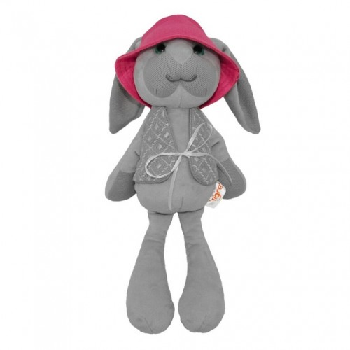 Зайчик в оригінальному жилеті прикрашений стильною вишивкою. Смарагдові очі на сірому фоні – дизайнерська ідея що надає іграшці своєрідного шарму. Особливий аксесуар іграшки – рожева панама – користується популярністю серед дітей та молоді завдяки переможцям Євробачення 2022 – гурту Kalush фронтмен якого виступав у панамі. Зайчик Стефі – іграшка-символ переможця! Іграшку можна дарувати разом із дипломами на змаганнях за особливі успіхи у навчанні або як сувенір який спонукає досягати поставленої мети та перемагати.