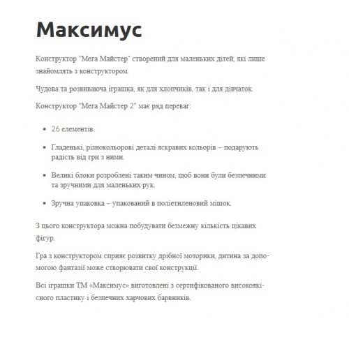 Конструктор Мега Майстер 2 26 ел. (1/12) MAXiMUS