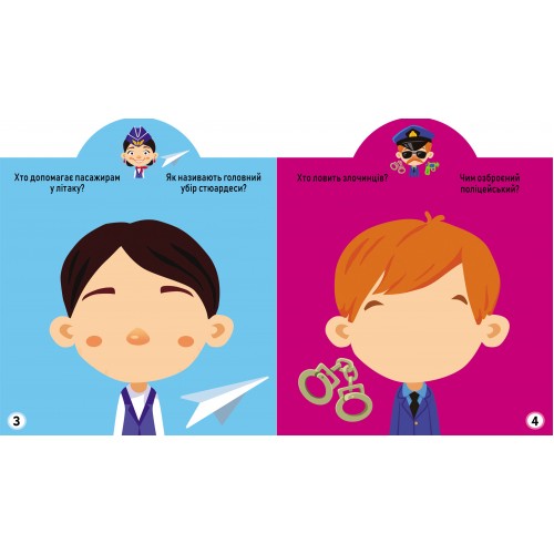 Чиї це оченята  носики та ротики? Відгадай  кого зображено на малюнку! Допоможи представникам різних професій повернути те  що вони загубили. Використай для цього наліпки. А якщо заплутаєшся  подивися на зразок угорі сторінки.