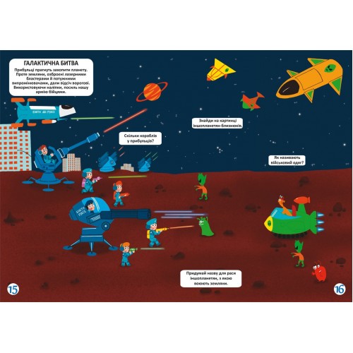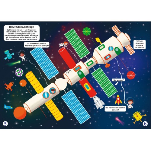 Наш неозорий Всесвіт приховує безліч таємниць. Хочеш розгадати їх? Тоді разом із відважними космонавтами вирушай у захопливу подорож до далеких зір і невідомих планет! Хутчіш зазирни в книжку  щоб дізнатися все про космос! Фантазуй  створюючи власну галактику! Тобі стануть у пригоді понад 300 меганаліпок. Використовуй як підказку зазначені поруч із ними номери сторінок.