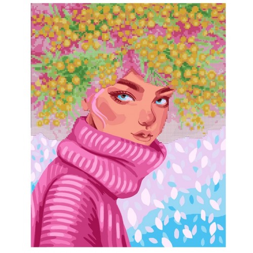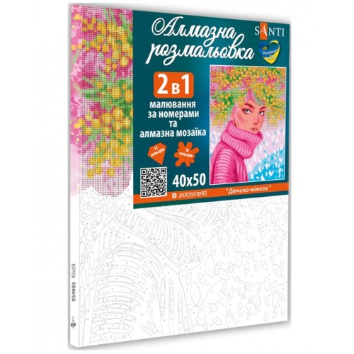 Картина 2в1 за номерами з алмазною мозаїкою SANTI Дівчина-мімоза 40х50 см.